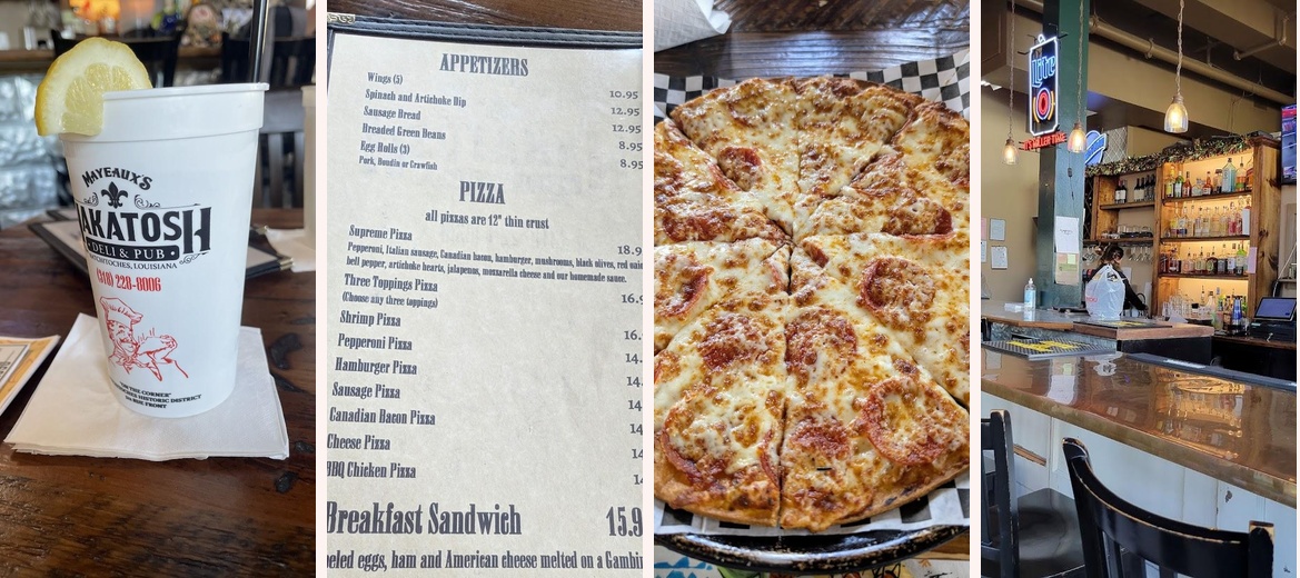 The menu at Mayeaux’s Nakatosh Deli & Pub showcases an enticing blend of classic deli fare and local favorites. The standout items include a wide array of pizzas averaging around $15.84, featuring anything from classic pepperoni to the unique shrimp pizza. The cobbler-filled muffulettas and hearty poboys carved from fresh bread loaded with meats and toppings make ideal lunch or dinner selections.